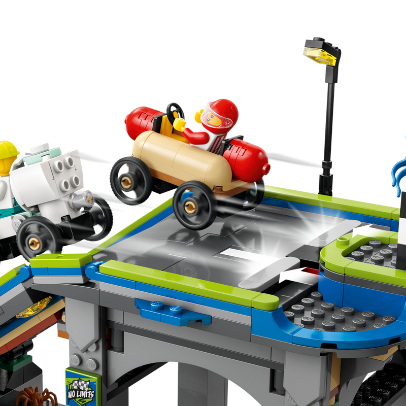 Elevate your child's playtime excitement with the LEGO® City No Limits: Race Car Ramp Track (60460) toy for ages 6 and up. This dynamic soapbox racing set features a towering toy car ramp and 2 unique soapbox race vehicles. Watch as kids place the quirky hot dog and toilet cars at the ramp’s peak and flick a lever to send them hurtling from the start line. Complete with 4 minifigures, including hot-dog vendor and plumber drivers, this set inspires imaginative play and storytelling.