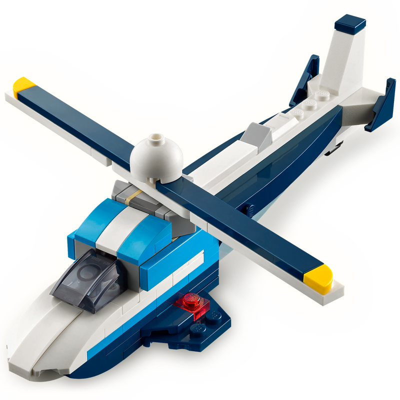 Kids can choose to build 3 different awesome vehicles: an airplane toy with a rotating propeller and moving wheels; a jet plane toy with moving wheels; and a helicopter model with a spinning rotor blade. Each model can be displayed on a brick-built stand and the set is an impressive gift for kids who enjoy playing out imaginative action-packed stories.