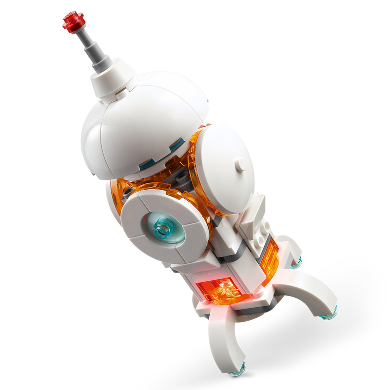 Boys and girls aged 8 plus play out stories among the stars with this LEGO® Creator 3in1 Space Robot (31164) science playset. This robot toy for kids is set on moving tracks and features a jetpack, a body and head that can spin around, posable arms and fingers, a balloon, and a light brick that illuminates its chest.